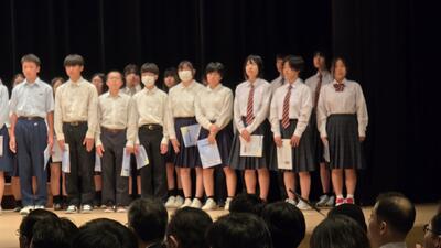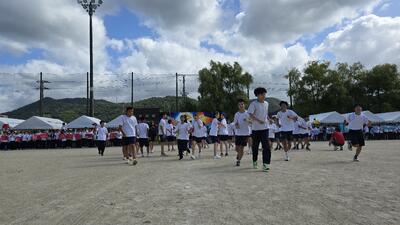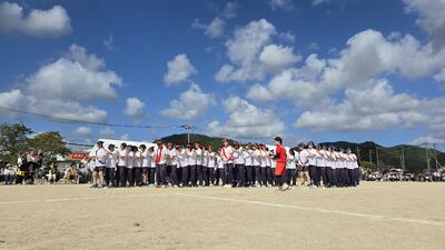 閉会式では、最優秀団の発表と各種表彰が行われ、歓声と拍手が響く中で、達成感に満ちた生徒たちの笑顔が印象的でした。最後の閉会挨拶では、生徒会副会長が全校生徒を代表して感謝とねぎらいの言葉を述べ、体育祭のフィナーレを心温まる雰囲気で締めくくりました。