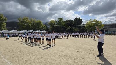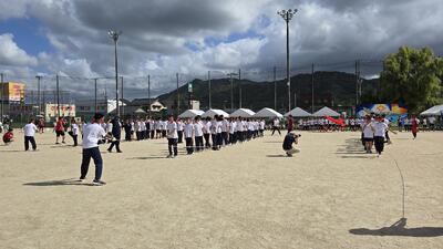 体育祭の見どころの一つは、各学級が一丸となって挑んだ「大縄跳び」。クラス全員が声をそろえ、跳ぶタイミングを合わせて挑戦するこの種目は、まさに日々の練習と信頼関係の賜物です。回を重ねるごとに跳躍のリズムが揃い、最高記録に挑む姿は感動を呼びました。