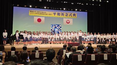 ステージでは、中学生全員が「引揚者をむかえる歌」を心を込めて歌い上げ、会場に大きな感動を届けました。また、若浦中学校の生徒代表による「誓いの言葉」も朗々と響き、平和への想いが深く伝わる時間となりました。