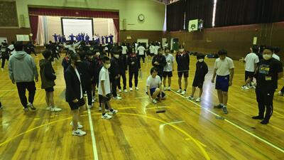 本日、1年生が舞鶴支援学校中等部の生徒のみなさんと、教室・武道場・体育館に分かれてスポーツ交流を行いました。
