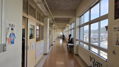 これは5時間目が始まる3分前の廊下と、2年1組・3組の教室の様子です。
