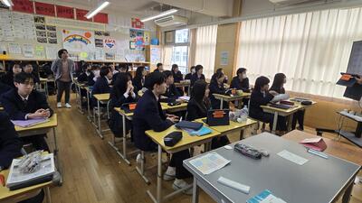 本日5時間目に行われた、2年生2組の英語の授業を紹介します。 本時は[比較級を使った表現]をテーマに学習を進めました。 先生の発音に続いてリピートしたり、ワークシートに取り組んだりと、集中して課題に向き合う2年2組の生徒たち。 基礎的な表現力をしっかりと身につけるため、一語一語を大切にしながら学習に取り組んでいます。