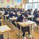 写真は、1時間目の国語のテストに取り組む2年3組の様子です。
