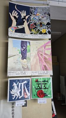 現在、校内に「京都府教育美術展」に出展された生徒作品を掲示しています。 1年生の立体感のある漢字のデザイン、2年生のみずみずしい風景画、3年生の深いメッセージ性が込められたポスターなど、各学年の良さが光る力作揃いです。 本校にお立ち寄りの際は、ぜひ生徒たちの表現力の結晶をご覧ください。