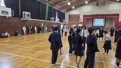 1年2組と2年2組(体育館)