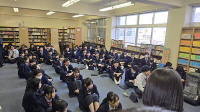 6限目の探究学習、図書室では1年4組と2年4組による合同授業が行われていました。