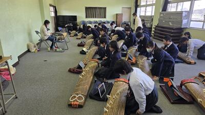 昨日に続き、本日は2年生の音楽の授業で「琴」の学習が行われました。