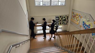 今回は、1組同士、2組同士といったクラスごとの縦割りチームに分かれ、本番で使用する「文字づくり」に挑戦しました。先輩である2年生がリーダーシップを発揮し、1年生と協力しながら、大きな画用紙やパネルを手に試行錯誤する姿が印象的でした。どのようなメッセージが出来上がるのか、本番の発表をどうぞお楽しみに!