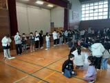 本日の6限目、体育館にて1年生と2年生による合同探究学習が行われました。現在、学校全体で取り組んでいる「BeFes!」に向けて、学年を越えたチーム編成で準備を進めています。