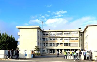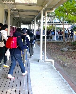 早い時間帯から。登校生徒はまばらですが気持ちの良いあいさつが交わされます。