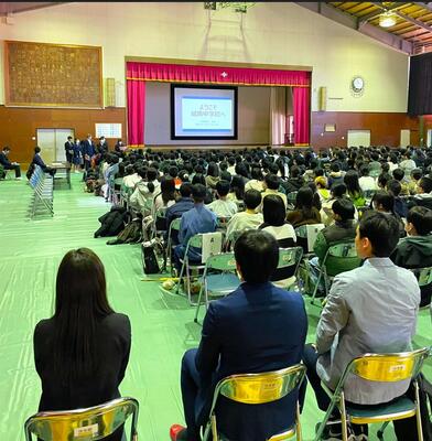 このたび5年ぶりに浦項市青少年交流訪問団の来訪を受けて、本校では3年生の生徒たちが有意義な文化的交流のための企画・運営、あたたかいおもてなしに知恵を絞り準備しました。