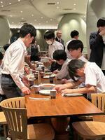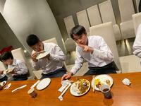 東京観光しながら夕食会場に到着です。あぁ〜お腹空きました😫