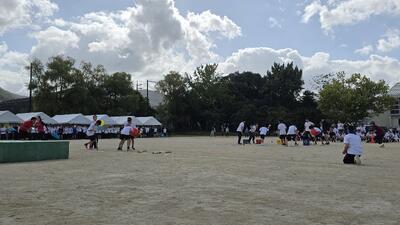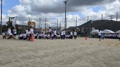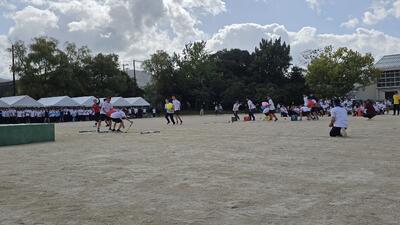 10/9 体育祭 進め!前へ!走れ!1年生! 投稿: 学校管理者 (10/09) 体育祭 1年生学年種目 1年生による学年種目では、バラエティ豊かな障害物競走が行われました。 生徒たちは仲間と声を掛け合いながら、全力で挑戦。応援席からも大きな声援が送られ、会場全体が温かな雰囲気に包まれました。 初めての体育祭となる1年生にとって、団結力や挑戦する楽しさを実感できる貴重な時間となりました。
