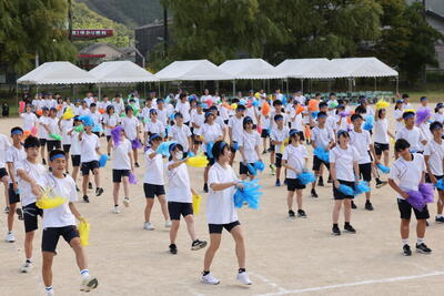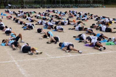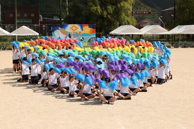 10/10 体育祭 集団演技(青組) 投稿: 学校管理者 (09:39) 【体育祭 集団演技〈青組〉】 写真は青組の演技の様子です。色とりどりのポンポンを手に、全員で心を一つにして動きをそろえ、美しいフォーメーションを描き出しました。それぞれの個性を表現した鮮やかな隊形には、練習を重ねてきた努力とチームの団結があふれています。
