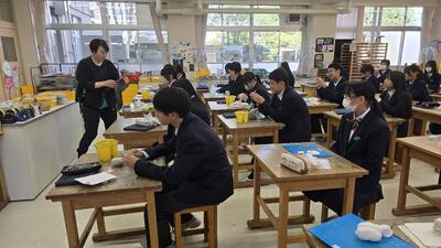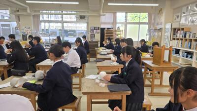 教室では、生徒たちが真剣な表情で素材を確かめたり、友達とアイデアを語り合ったりする姿が見られました。完成した作品がどんな光を放つのか、楽しみです。