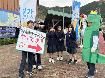 2年3組が探究活動の一環として、「万願寺甘とう」をテーマにした地域PRイベントを、道の駅 舞鶴港とれとれセンターで行いました。
