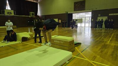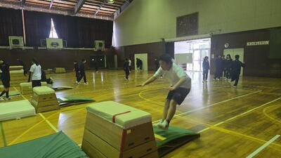 開脚跳びや台上前転など、それぞれの目標に合わせて練習に励んでいます。
