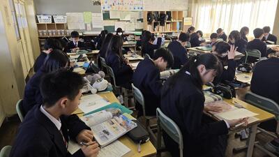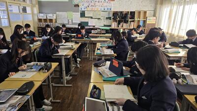 生徒たちは、教科書やタブレットを駆使して情報を集め、大地の成り立ちや変化のメカニズムについて仮説を立てていきます。 歴史的なエピソードと科学的な知識を結びつけ、過去に起きた地殻変動の謎を解き明かす。 まるで探偵のように、証拠を集めて推論する生徒たちの真剣な表情が見られました。