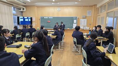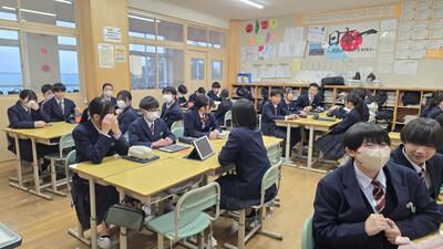 本日の2年4組の探究の授業風景です。 来月に控えた「フェス」に向け、クラス全員で取り組む「ショート動画」の企画会議が行われました。