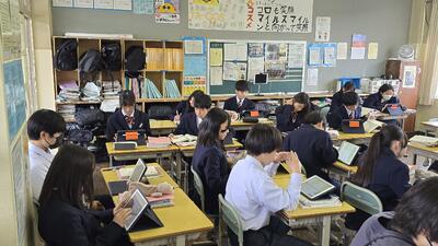 1年4組の国語では、ヘルマン・ヘッセの『少年の日の思い出』を題材に、物語の結末を自ら創作する授業を行いました。