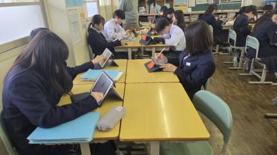 身近な地域のリアルなデータを使うことで、「数学が実生活にどう役立っているか」を肌で感じる機会となりました。グループで画面を見せ合いながら、活発に意見を交わす姿が印象的でした。